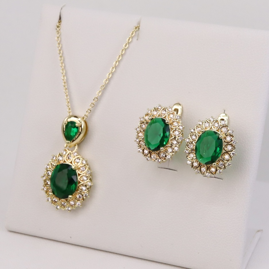 Set cercei+lant+pandativ placat cu aur 14K model ST093 – lant 45 cm