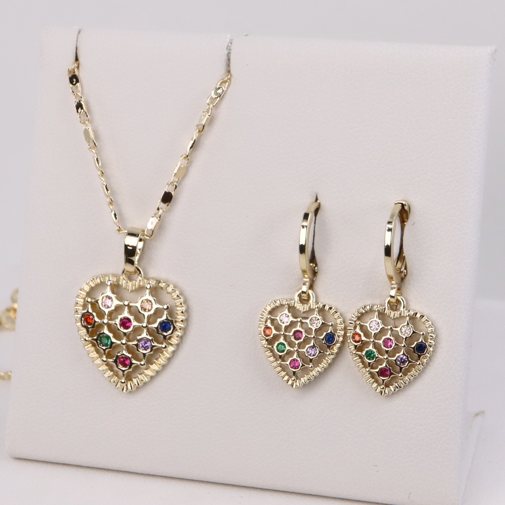Set cercei+lant+pandativ placat cu aur 14K model ST173 – 45 cm